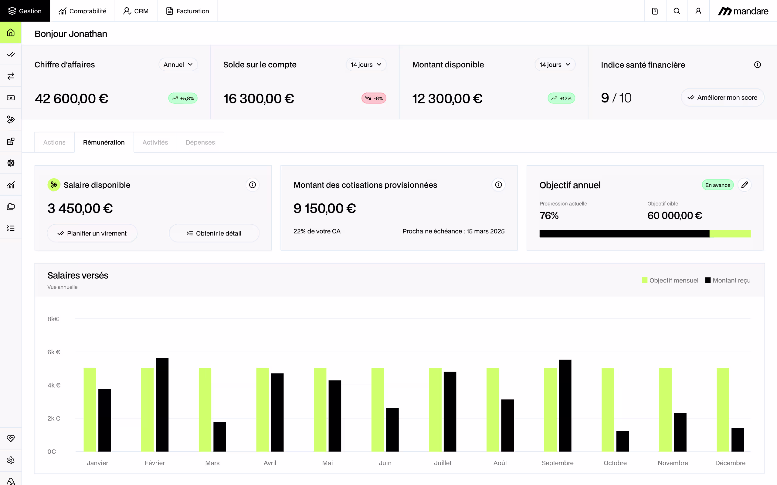 Mandare automatise votre comptabilité et rend vos indicateurs financiers accessibles en temps réel, pour une gestion claire, fluide et toujours conforme.